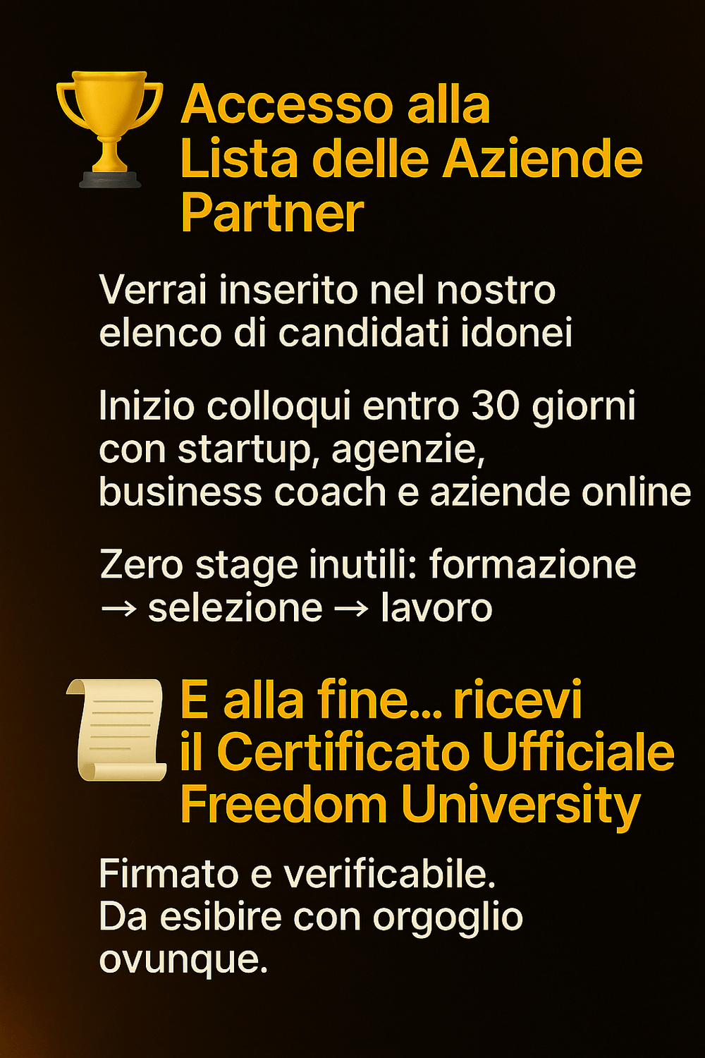 ✅ Alla Freedom University formiamo, accompagniamo e inseriamo con aziende reali in cerca di Setter, Closer e Chatter.