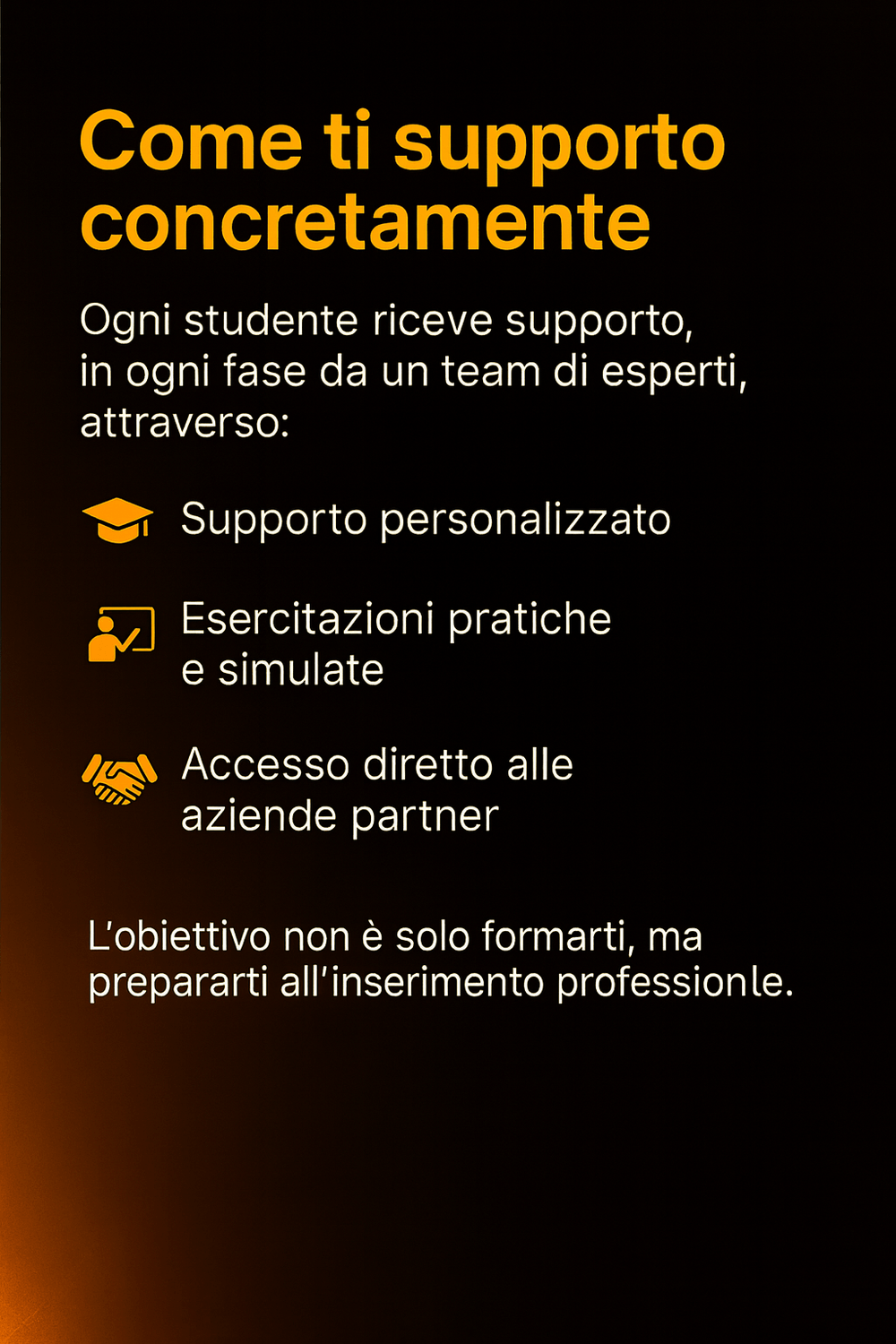 Tu non segui un corso. Segui un percorso che ti prepara e ti posiziona nel mercato.